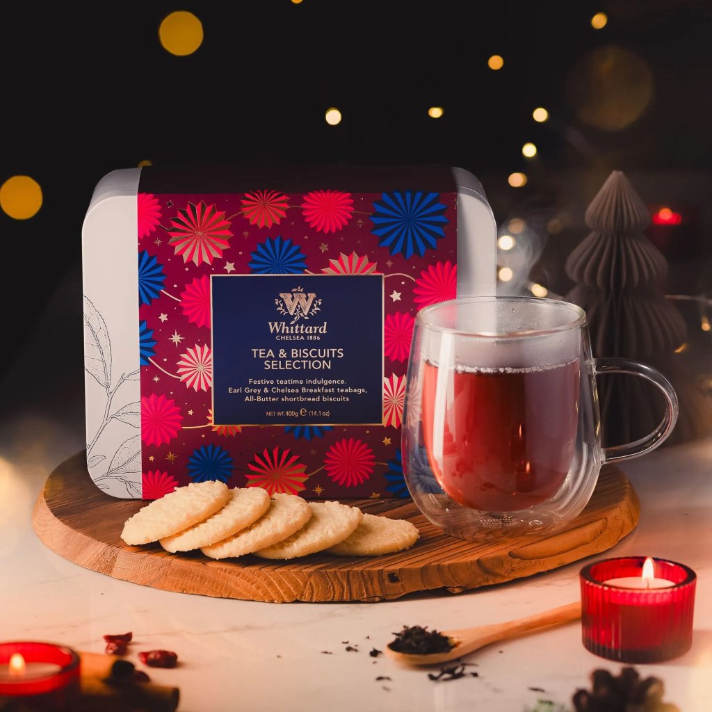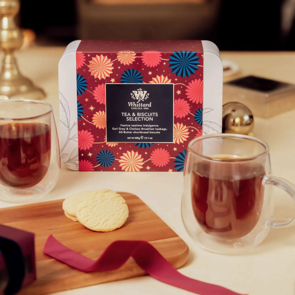 Ochutnejte výběr našich luxusních černých čajů a lahodných máslových sušenek. Baleno v nádherné dárkové plechovce.