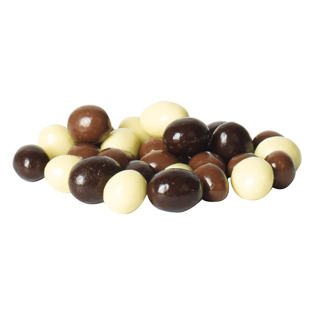 Složení: cukr, kakaový tuk, kakaové máslo, sušené plnotučné mléko, kávová zrna (9 %), leštící látka (arabská guma), kakaový prášek, emulgátor (sójový lecitin), přírodní vanilkový extrakt. Mléčná čokoláda obsahuje: nejméně 30 % kakaové sušiny, mléčné sušiny nejméně 20 %. Hořká čokoláda obsahuje nejméně 65 % kakaové sušiny. Bílá čokoláda obsahuje nejméně 20 % kakaové sušiny, mléčné sušiny nejméně 20 %.
