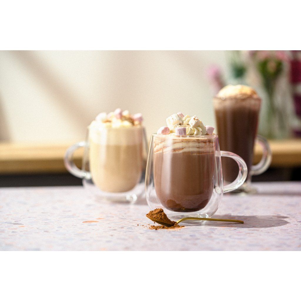 Luxusní horká čokoláda má bohatou a sametově hebkou chuť. Je ideálním společníkem do mrazivého počasí a výborně chutná také se šlehačkou či Marshmallows. Svou lahodnou chutí potěší nejenom děti!