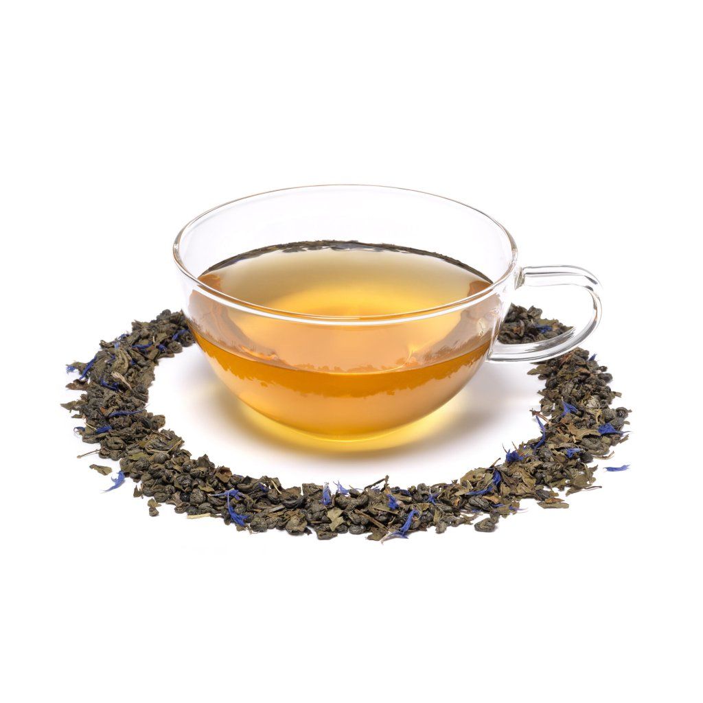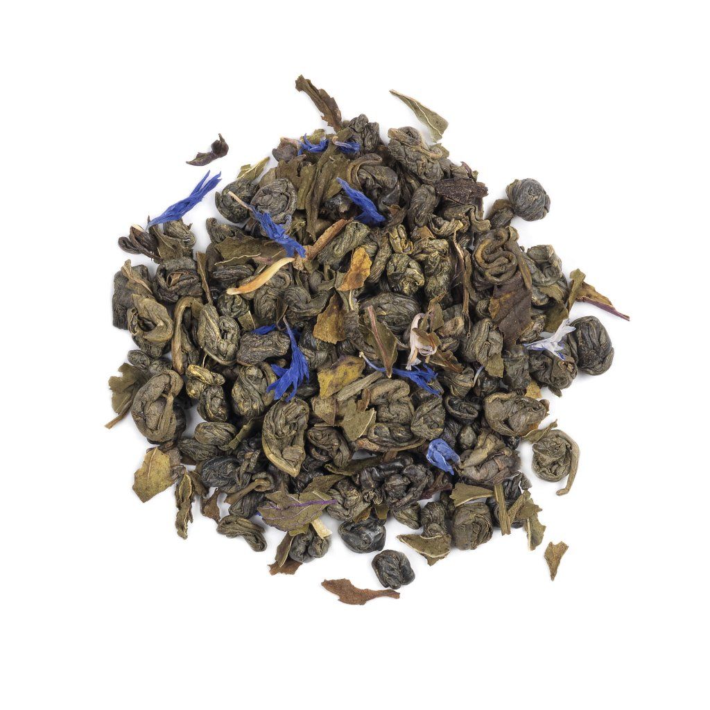 Složení: zelený čaj, 10 % máta peprná, okvětní lístky chrpy, aroma.