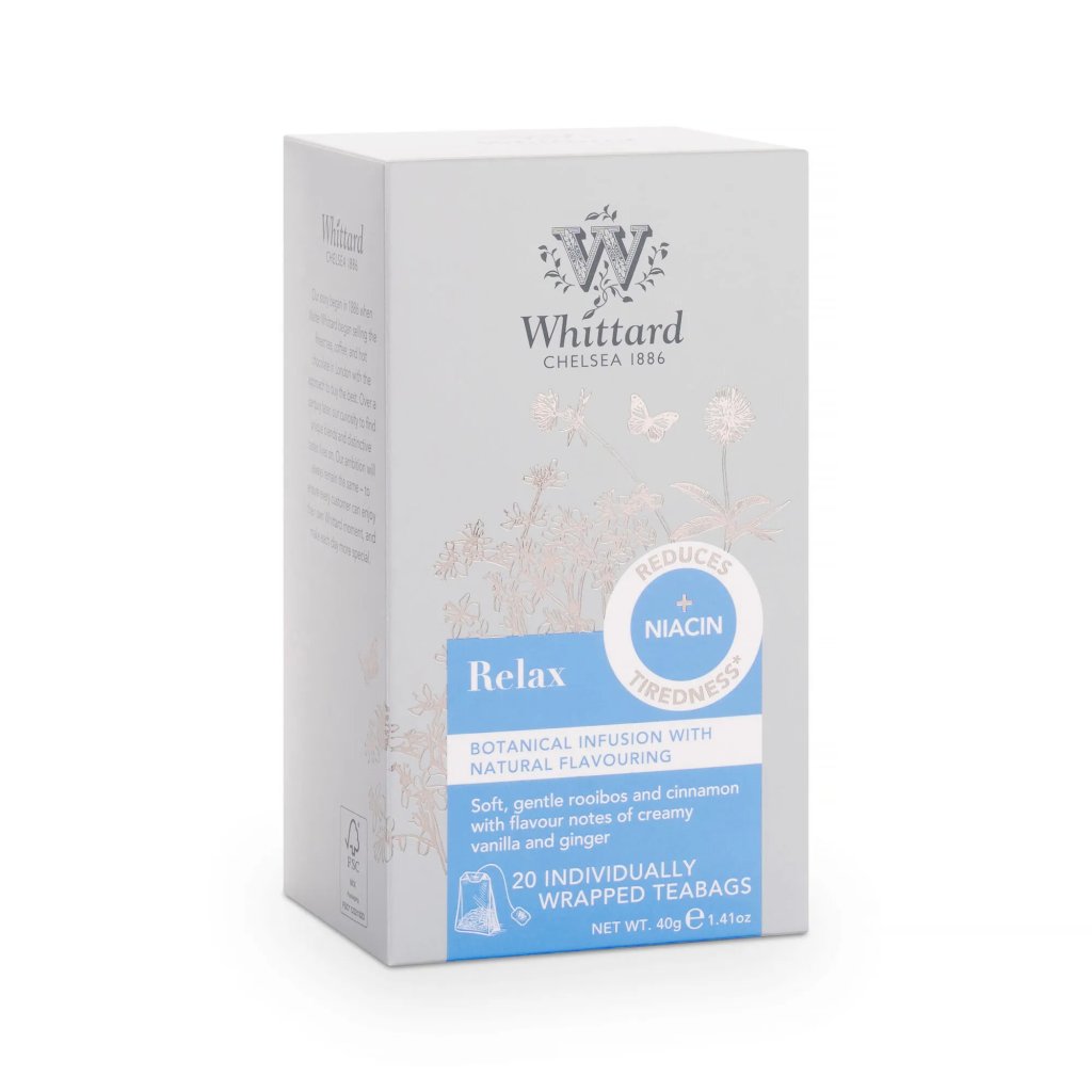 Odpočiňte si a načerpejte novou energii s šálkem naplněným rooibosem, heřmánkem a jablkem. Tento čaj je s přidaným niacinem, známým pro své snížení únavy a vyčerpání. Ideální pro to, abyste si udělali chvilku pro sebe s něčím lahodným k popíjení.